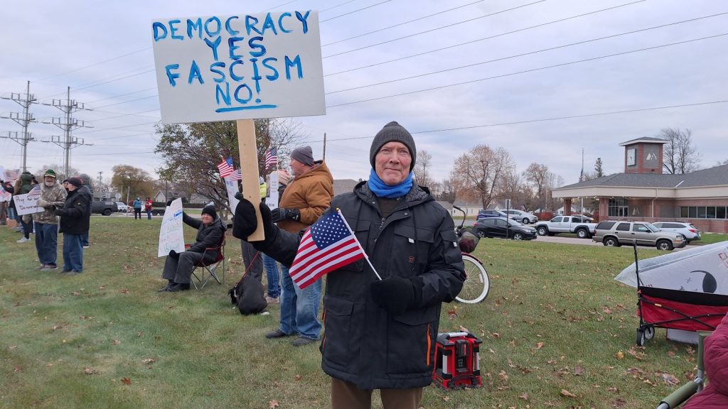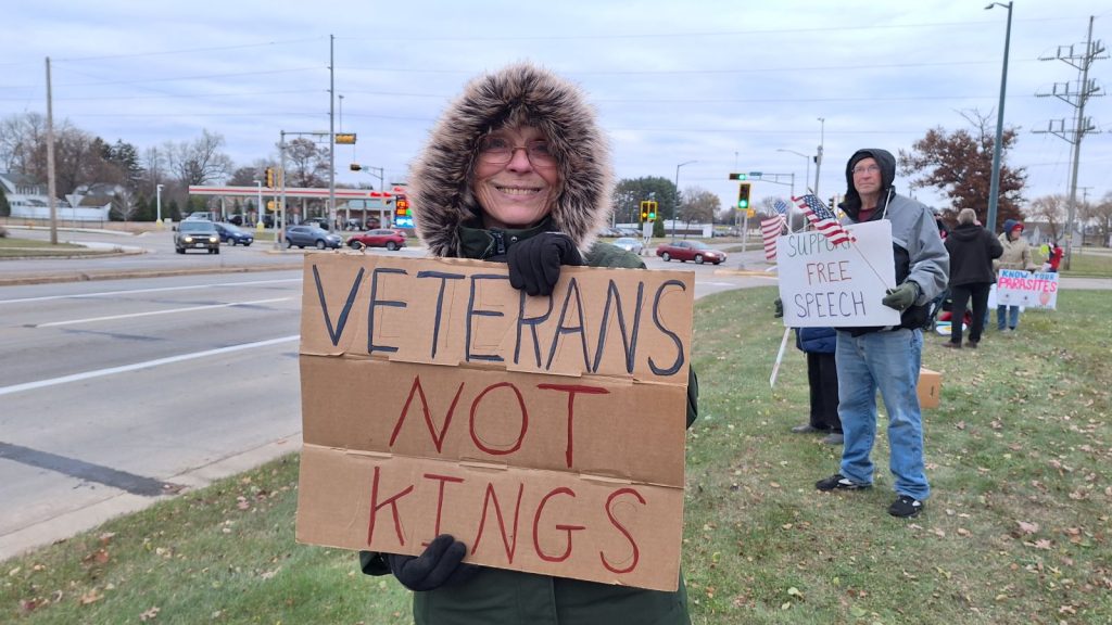 Liz McDonald came out to protest with several of her siblings. She’s from Stevens Point and said they came because their dad was a WWII veteran.