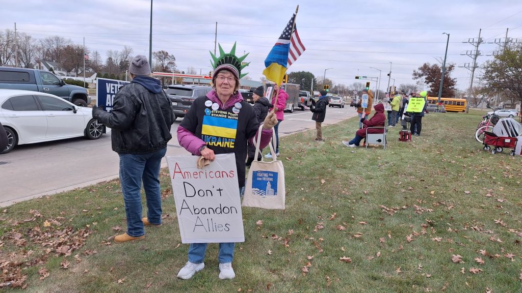 WISCONSIN RAPIDS, Wis. (WFHR / WIRI) – Dozens gathered on a busy corner in Wisconsin Rapids for a protest on a chilly Veterans Day on Tuesday.